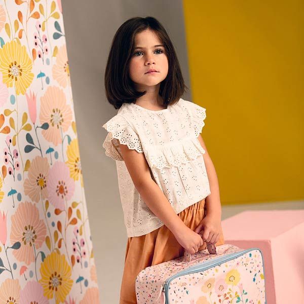 A suitcase in soft colors, nicely illustrated with a floral and springtime decor, perfect for taking your belongings for the holidays or for a weekend. This suitcase is waterproof. Its textile interior consists of a large compartment and two pockets.