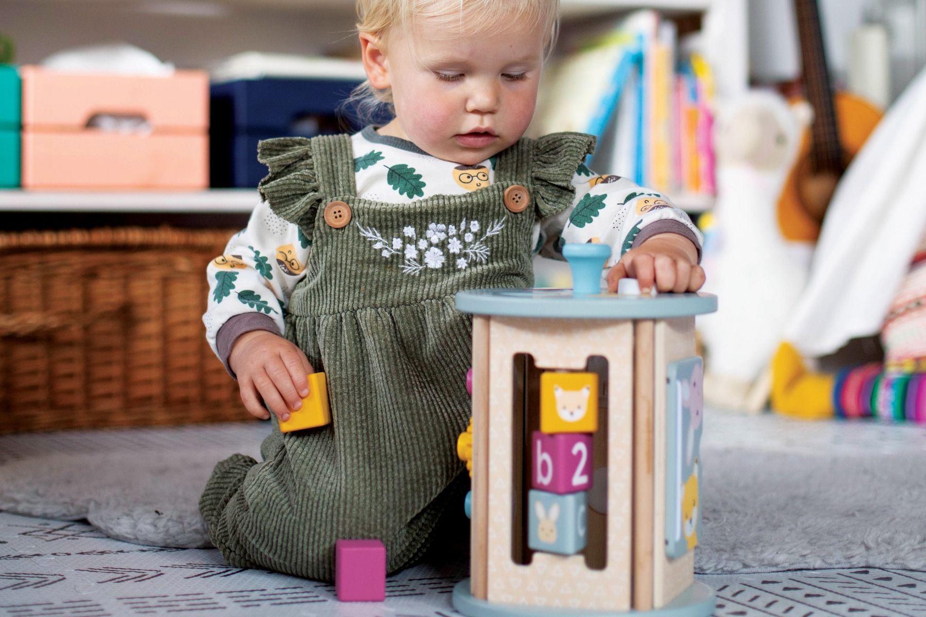 Little ones will be captivated by our FSC® Certified 100% Rolling Activity Sorter. There are four sides packed with activities including a wooden shape sorter, wooden flip book, wooden cogs and more. Its rolling nature makes it a fun task for toddlers to push along the ground as they toddle along.