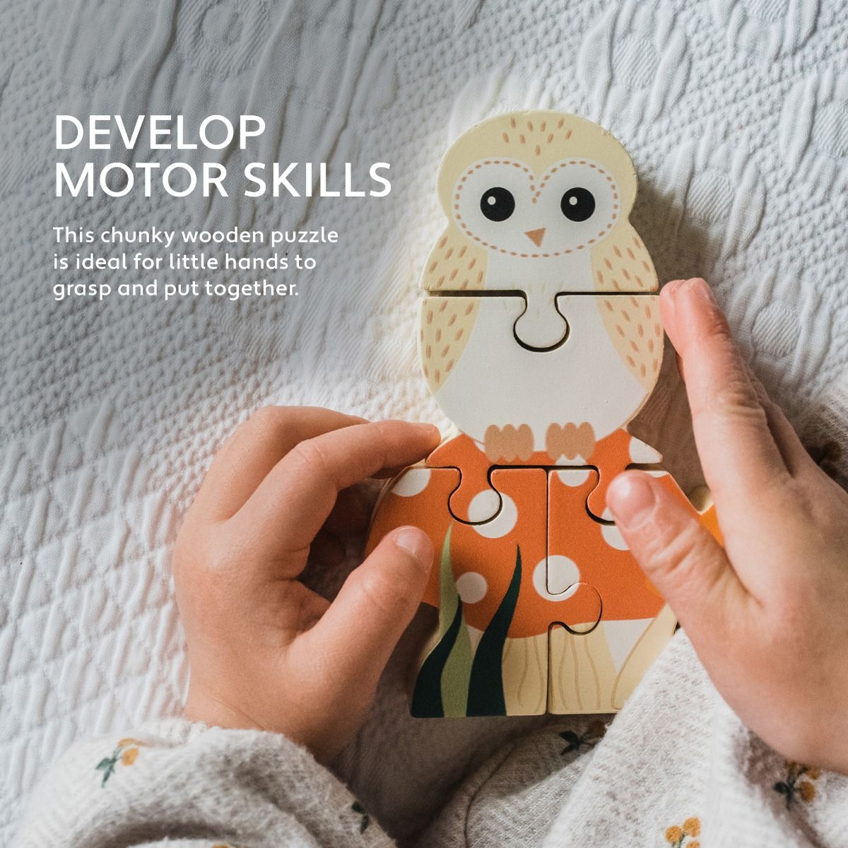 This chunky wooden puzzle is ideal for little hands to grasp and put together.